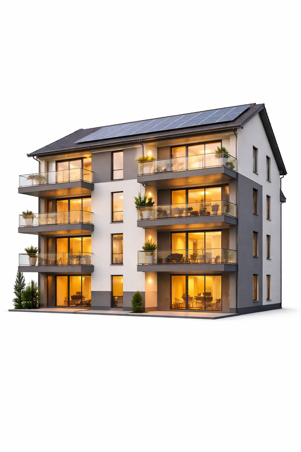 Für Mehrfamilienhäuser & Vermieter: Strom vom Dach direkt an Mieter – mit sauberem Konzept.